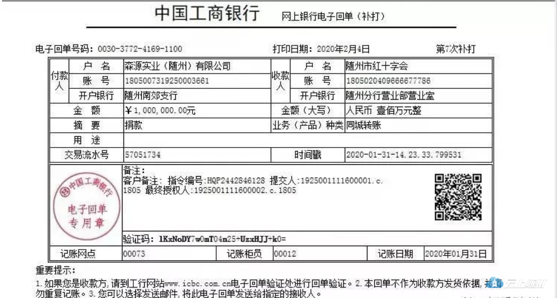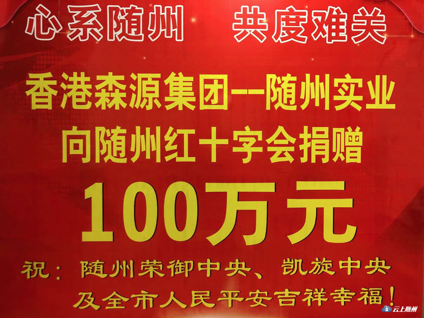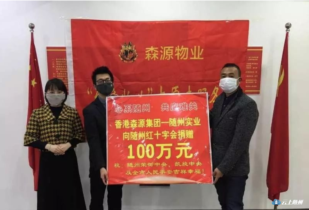 自新型冠状病毒疫情发生以来,森源实业(随州)有限公司(荣御中央和凯旋中央项目)时刻关注着随州疫情情况,在了解随州疫情开始蔓延之时,代表森源集团向随州红十字会捐赠100万元,用以口罩、防护服、消毒液、护目镜等医疗急需物资的采购,并对疫情防控区一线医护人员和患者提供帮助,以实际行动助力随州抗击新冠肺炎疫情彰显企业的大爱。具体用途明细后续由红十字会统一对外公示。