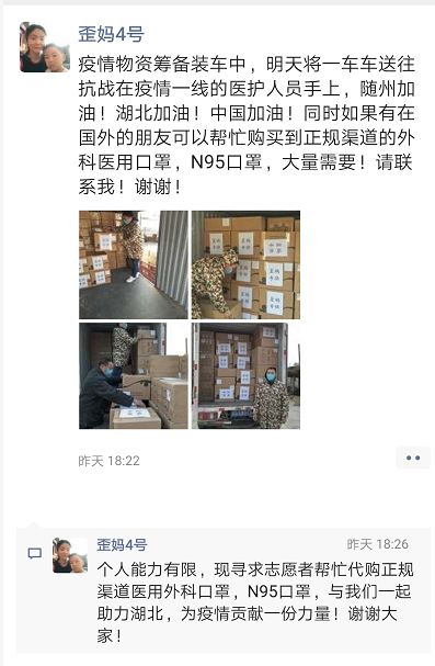 郭清华、郭振华是随县尚市镇群岳村人,郭清华现在已经嫁到广东潮州。看到家乡防控疫情物资频频告急,郭清华心急如焚。因为自己实在无法买到防护物资,2月8日,她又在朋友圈紧急求助,寻求国外朋友或志愿者,帮忙代购正规渠道的外科医用口罩、N95口罩。