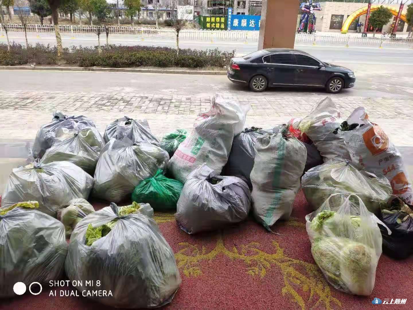 2月10日中午,北郊磙山村党支部书记汪鹏将装满一皮卡的蔬菜送到曾都城投公司。