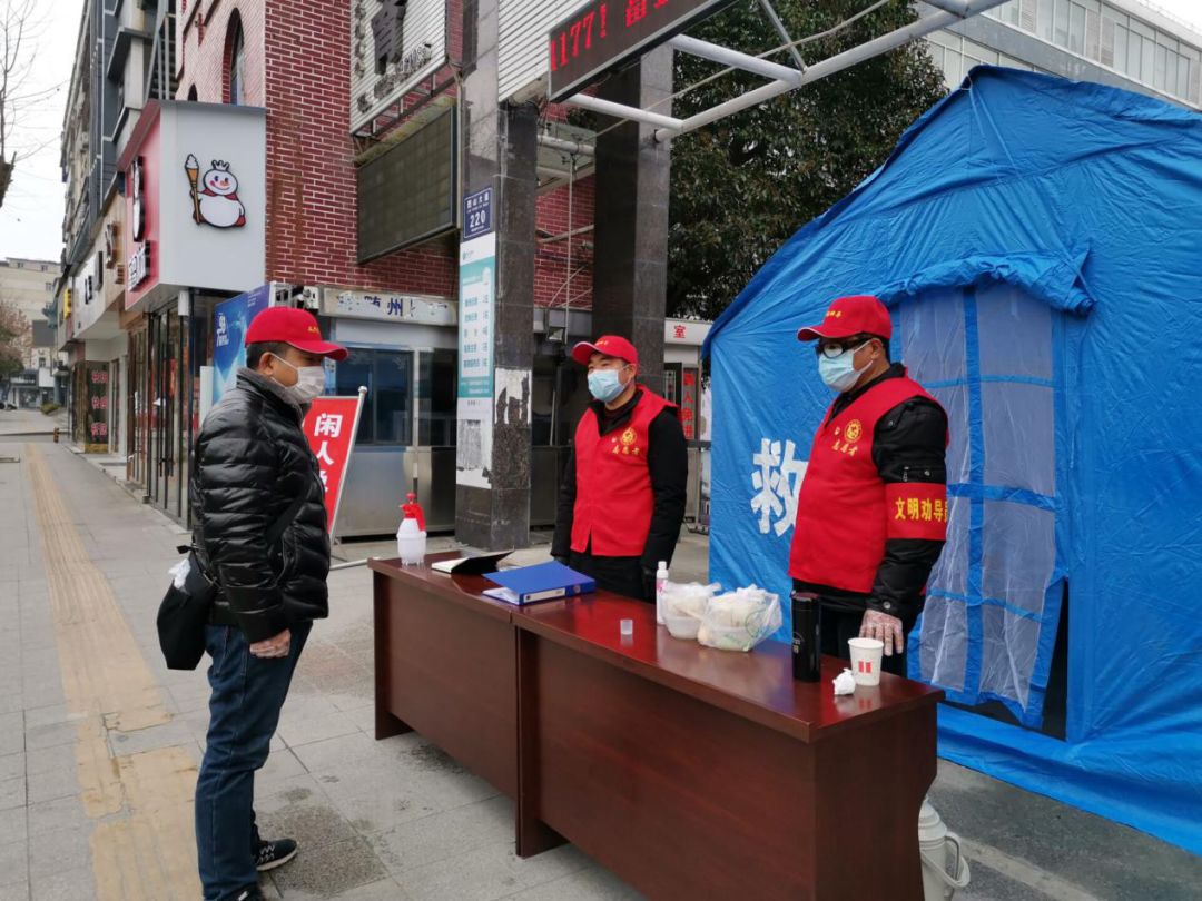 2月10日,东城办事处各小区实行“四有一服务”, 各小区卡口要求必须有人值守、有人登记、有人测体温、有人消毒、物资(蔬菜、药品)配送服务。