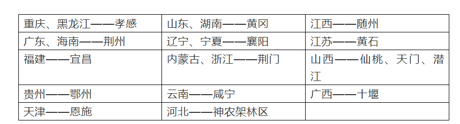 国家卫健委发布的各省对口支援湖北地市对应表