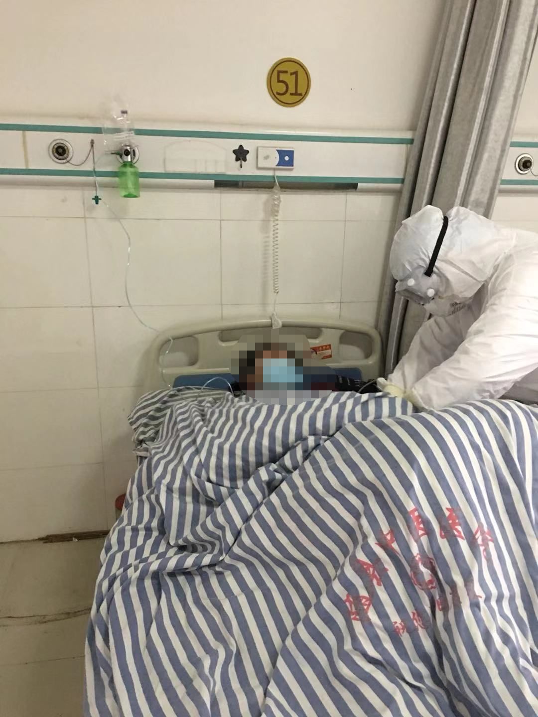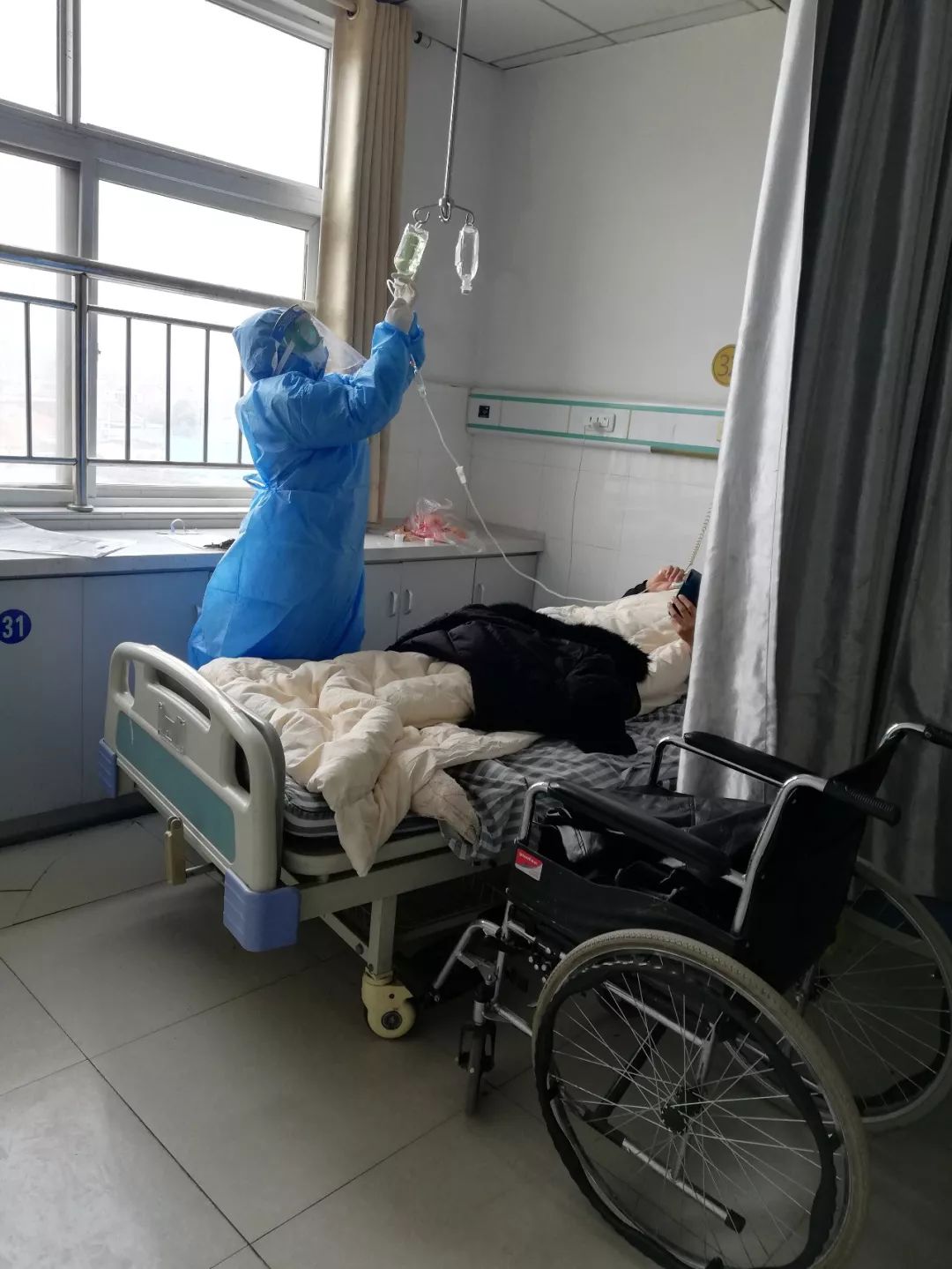 王凤在给隔离患者做治疗