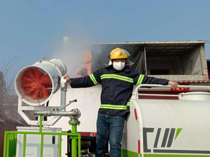 第二分队是疫情防控消杀队。社区党委调动辖区卫生防疫雾炮车每天对辖区主次干道、集贸市场、居民小区等区域喷洒消毒液。社区后备干部虞良主动承担起社区消杀工作,他身穿消防服,顶着寒风站在防疫车顶,仔细将消毒水喷洒在辖区各个区域。对房前屋后、死角区域,他身背桶式喷雾器,认真地对每个角落进行喷洒消毒,严防病毒传播。