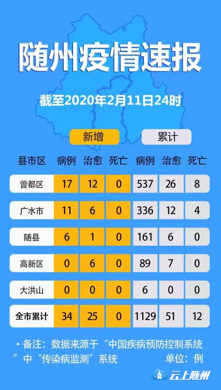 速报!2月11日随州新增34例,累计病例1129例,累计死亡12例