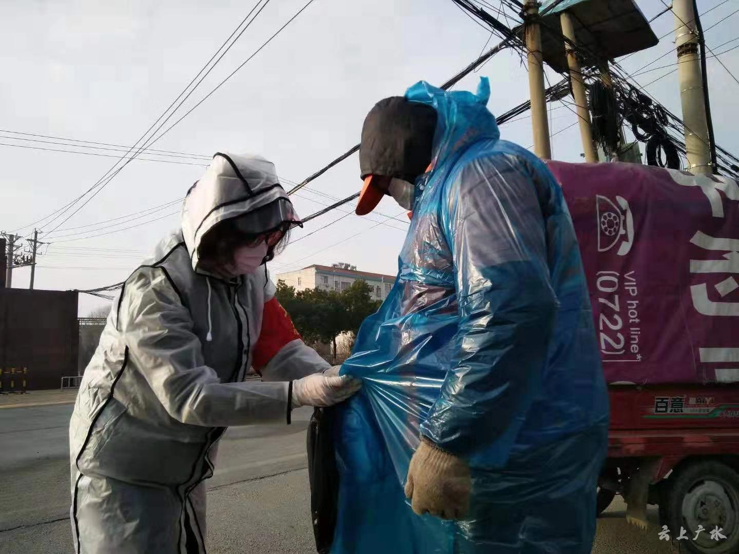 “一名女志愿者把自己的防护用品送给环卫工人,并给她穿上防护雨衣,太温馨感人了!”2月1日,这张照片在微信群和微博上刷屏,网友们纷纷留言,称赞她是最美女税官、“马路天使”。