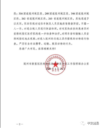 2020年春节,注定是一个难忘的日子。湖北省武汉市爆发新型冠状病毒的肺炎疫情,刺疼了亿万中国人的心,也让世界为之颤动。疫情爆发,人命关天。一时间,武汉紧急封城,铁路、高速、国道一律关停。随州市处在武汉城市圈范围内,受疫情的波及,在大年三十晚紧也急封城。