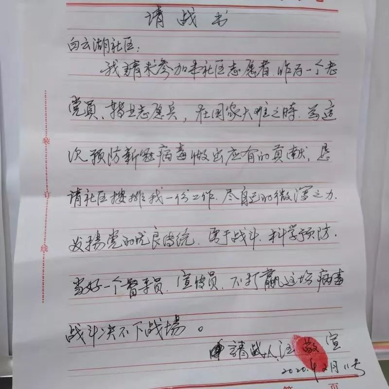 “我是白云湖小区党支部的一名退役军人党员,面对这场突如其来的疫情,作为一名退役军人,要拿出军人该有的作风,全力维护人民群众的生命安全;作为一名共产党员,要冲锋在前,发挥先锋模范作用。不忘初心,勇担责任,随时听从党组织调遣。愿同其他同志一道,战斗在疫情第一线,坚决打赢这场防疫攻坚战。”西城办事处白云湖社区“疫情防控党员突击队”16名突击队党员庄严宣誓。随后,立即投入到疫情防控一线工作中。