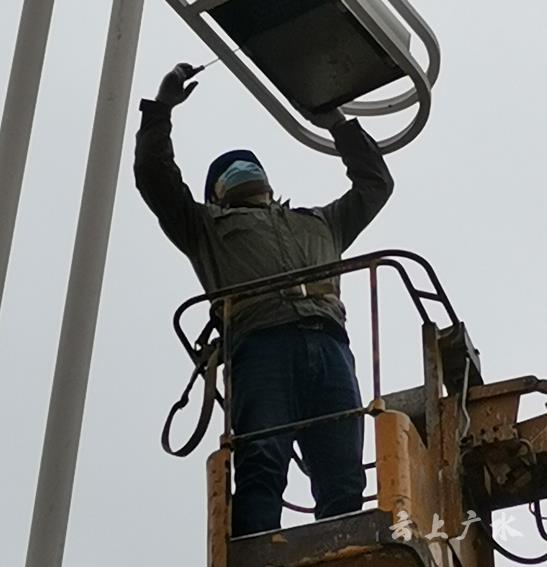 为做好防疫保电工作,保障城区街道夜间照明,2月12日,广水市供电公司路灯工区积极组织人员对城区背街小巷“失盲”路灯进行修复。
