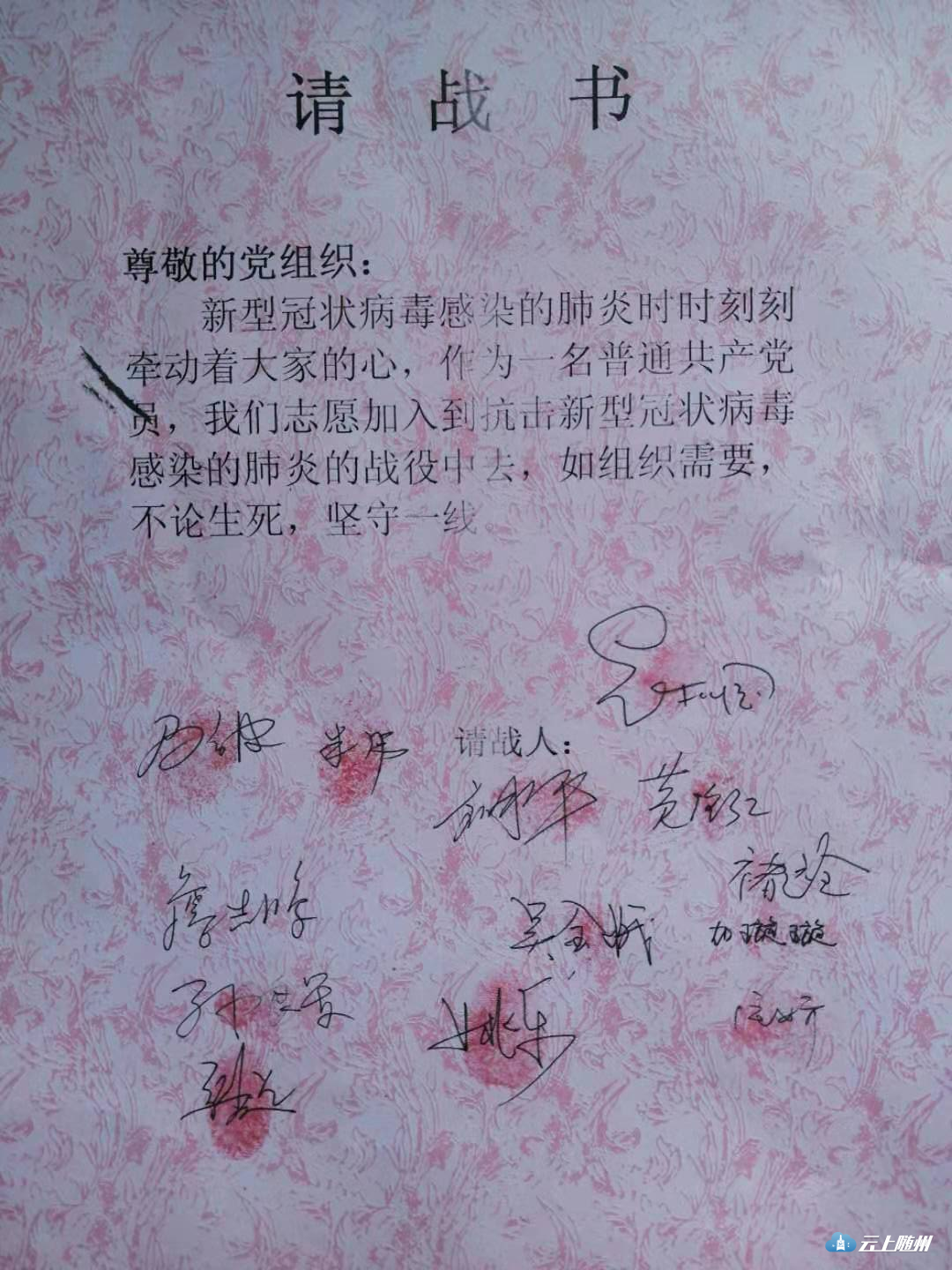 面对形势严峻的疫情,为进一步打好疫情防控攻坚战,曾都区医疗保障局全体党员干部积极请战,志愿加入到抗击新型冠状病毒感染的肺炎疫情防控工作中,全体党员干部纷纷表示:“如组织需要,不论生死,坚守一线,疫情不除,誓不后退”!