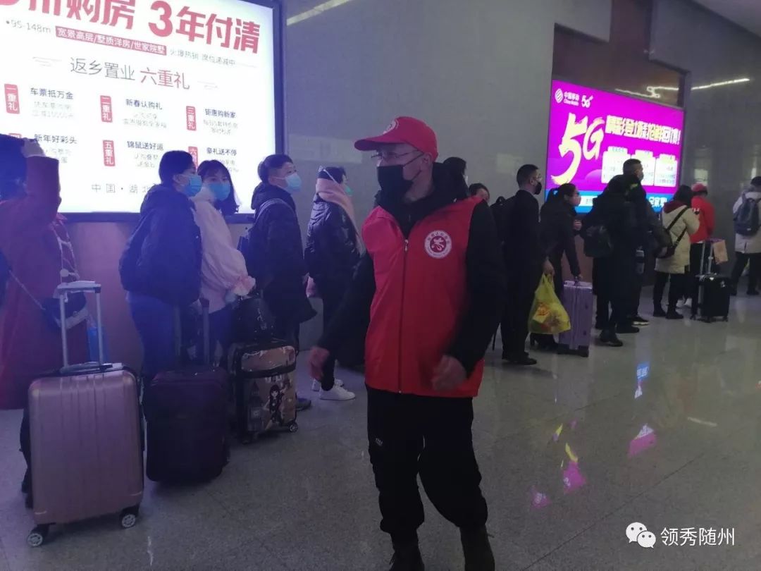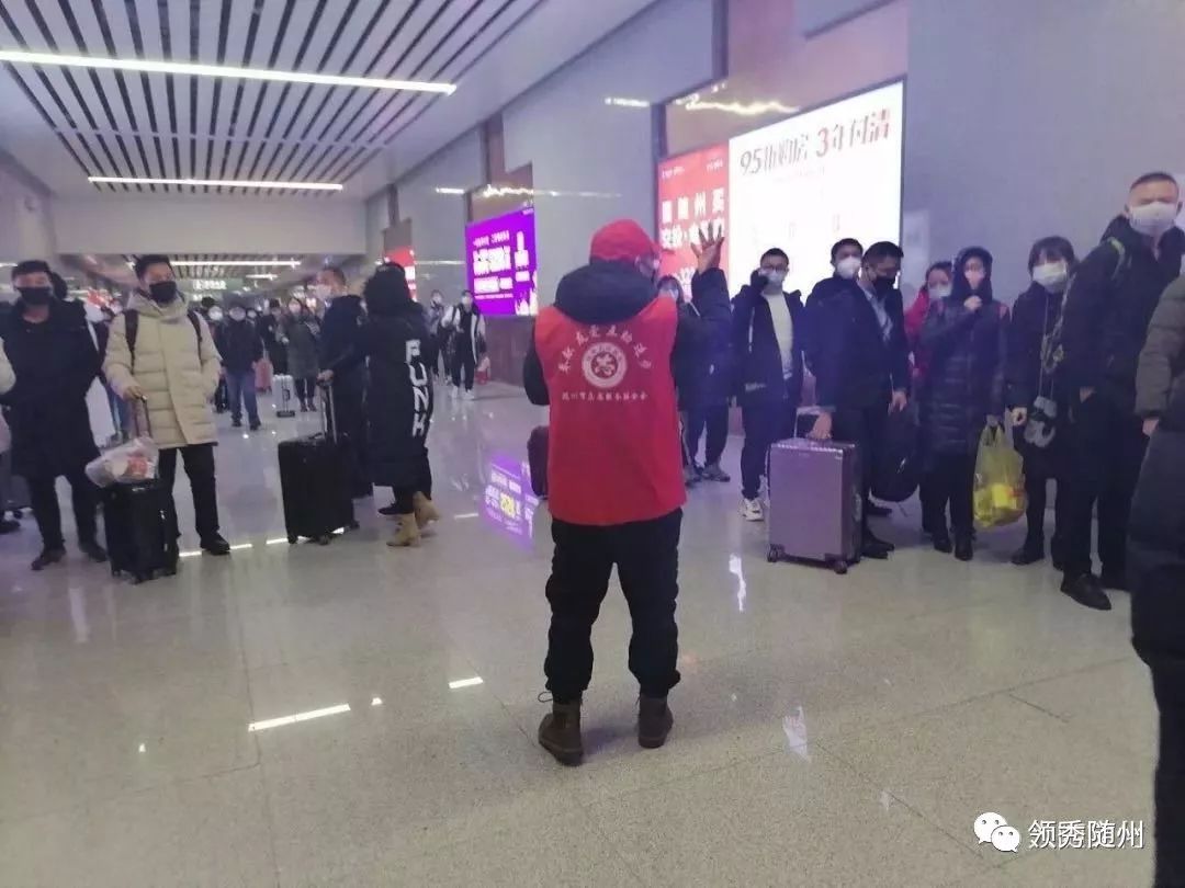 当晚11时许,在接到市指挥部有关领导的电话后,迅速在随州志愿服务工作群里紧急招募了10名突击队员,于次日(1月23)分赴随州高铁南站,何店高速路口等地配合工作人员进行回随州人员检查。