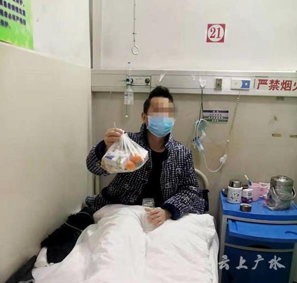 2月13日,广水市一医院抗疫后勤保障组将社会捐赠的牛奶、饼干、水果等营养食品,由医护人员送到60多名患者的手中,帮助他们补充营养,增强体质。