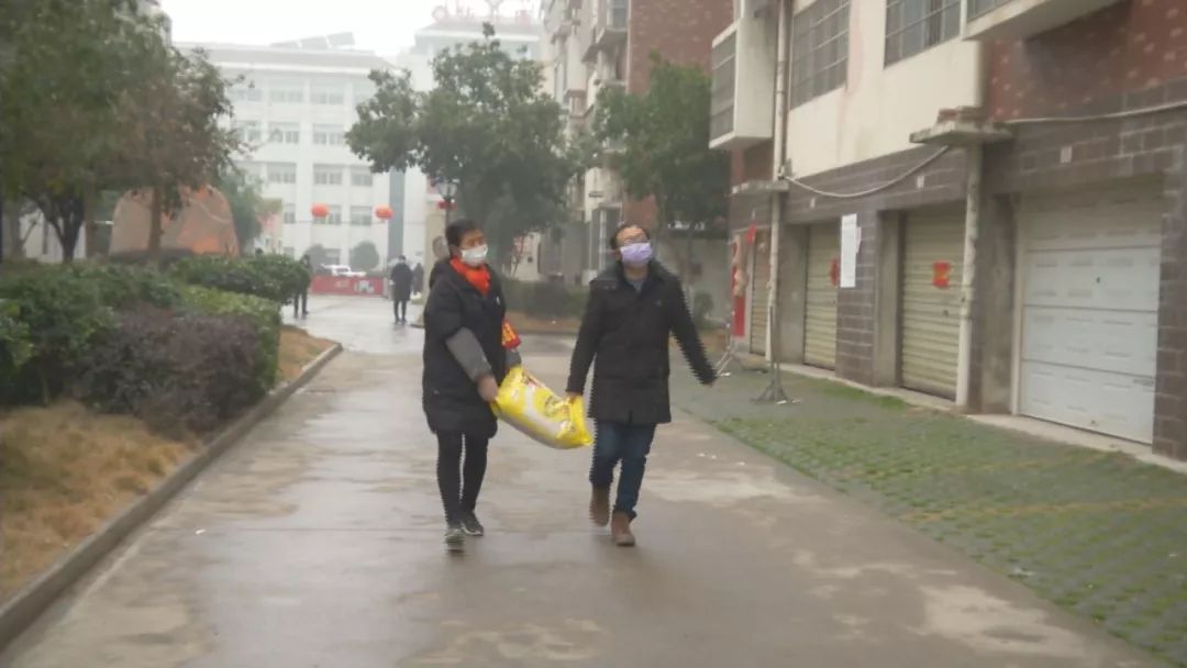 “来,这是你的大米,放在这里。疫情期间尽量不要出门,在家做好防护措施,要消毒提前跟我们说,需要什么跟我们物业的说,我们全方位的服务。”挂完电话,陈大秀马上将清单发给配送公司,随后将之前一名业主购买的大米送到家门口。