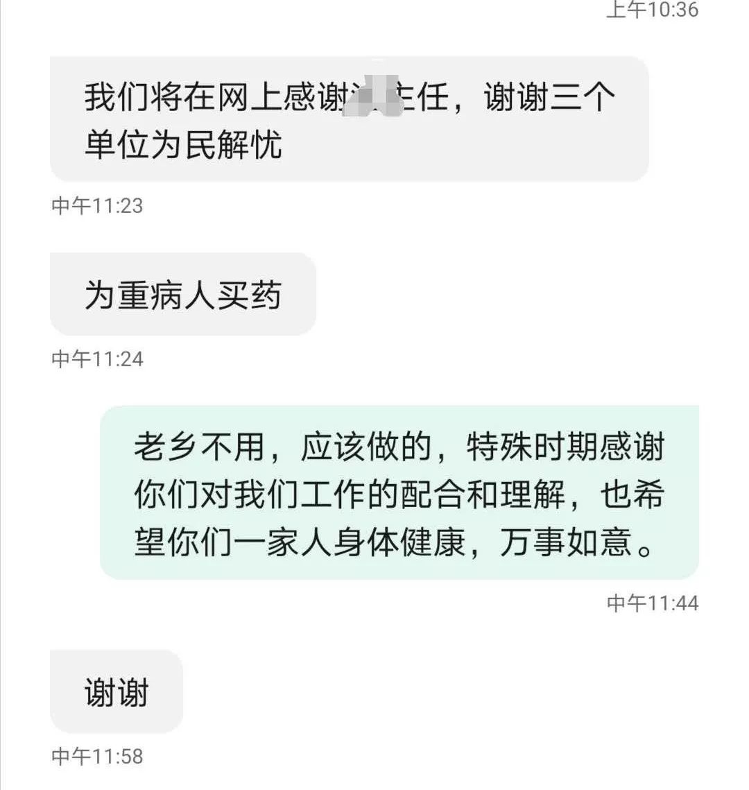 高城镇重新定义“物资运送车”,兼职买药“顺风车”,由各村统计上报急需购买的药品,再交由镇指挥部汇总,最后将清单交给卫生院物资运送车,群众“买药难”问题也得到了解决。其中,龙王庙村余立城在拿到了药后,想要在网上发表感谢信,被高城镇干部婉言拒绝了。