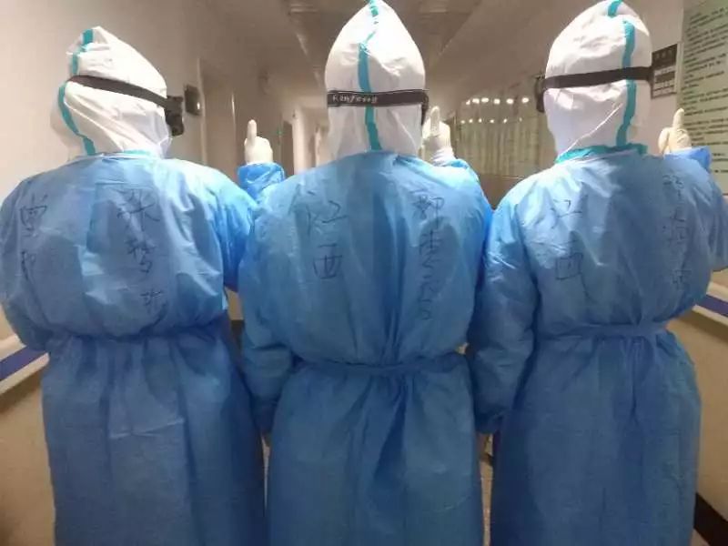 穿上防护服,谁也不认识谁。为了方便认识,江西医疗队员在防护服上写上江西和各自的名字。“这里有些医生来自江西省人民医院,在江西都是拔尖人才,业务精湛,能力突出。”郭惠香介绍,患者看到这么多专家来了,信心更足了。