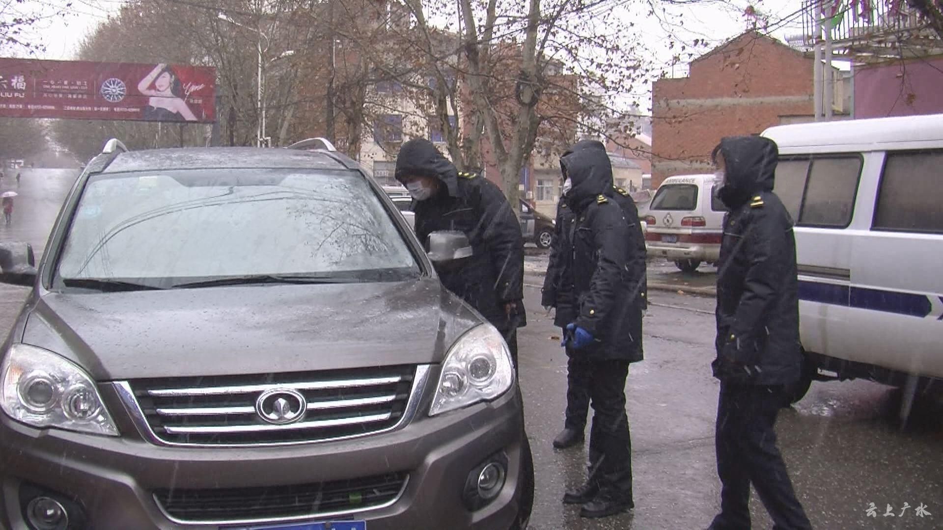 【同期声】城市管理执法局应山一大队副队长 吴刚:“我们从正月初一开始,接到政府和市局通知,城管一大队全部人员放弃休假,整个广水应山城区执勤。目前为止总共设置三个卡口,出动了56名工作人员,到目前为止没有休息一天。”