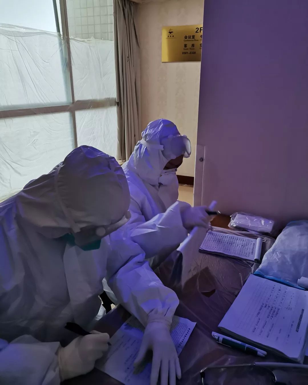送到留观点的人员各年龄段都有,来的时候基本没有什么症状,但危险往往潜藏在平静的背后。为节约防护服,每天查房由3名医生进行,上午下午各一次,王志勇和其他值守人员只能在房间待命。“除有新送来的留观人员我们要出去接待和处理紧要事情外,其他时间必须待在房间。”王志勇介绍。