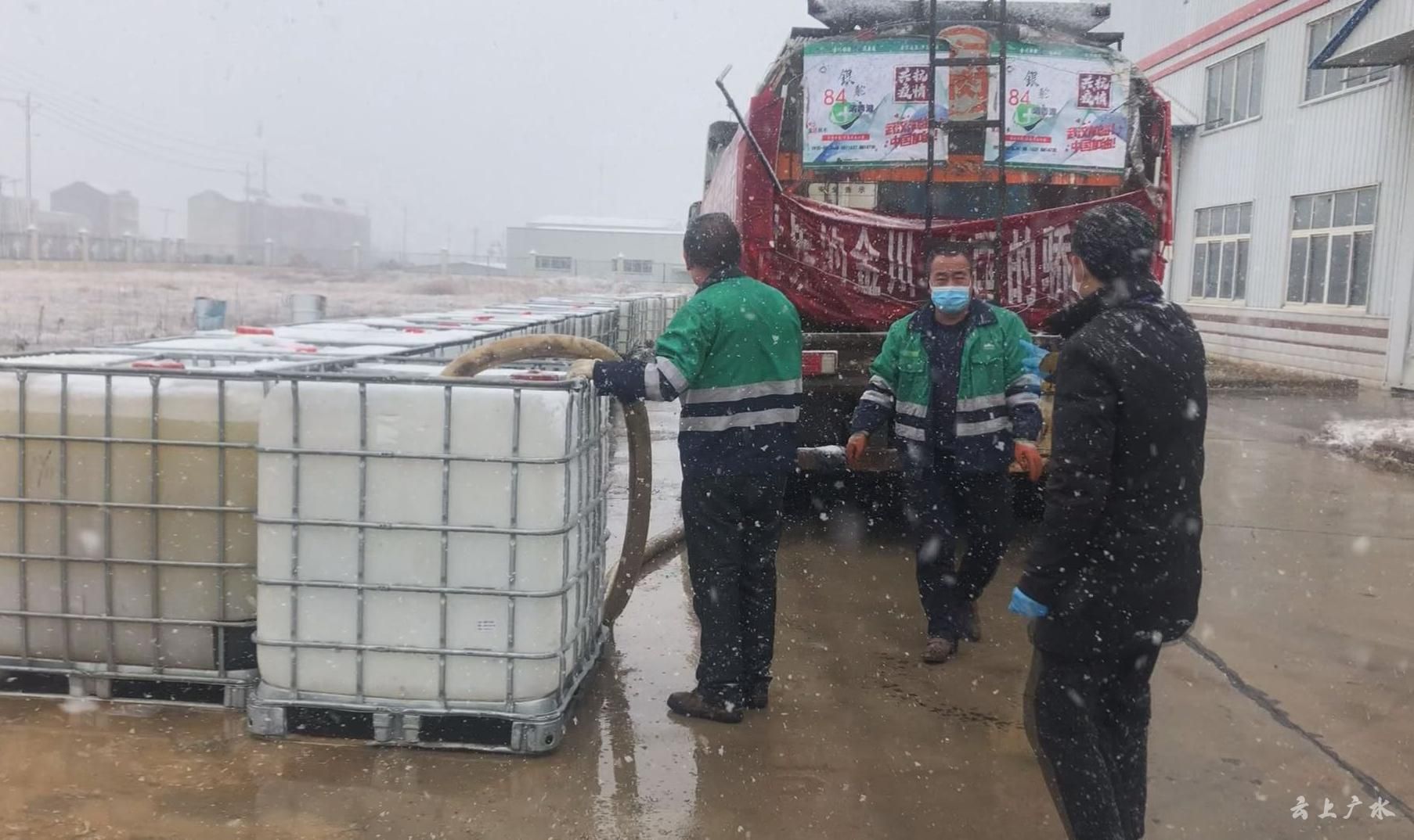 在广水新冠肺炎疫情防控工作进入关键时刻,在市一中校友志愿者积极协调沟通下,争取到甘肃省金昌市金川集团向我市捐赠30吨次氯酸钠溶液(可调配75-80吨84消毒液),并联系到危化品专用车辆运送。该罐装车于2月13日下午从甘肃省金昌市出发,星夜兼程1800公里,到达我市已经是15日上午10点多。大雪纷飞中,负责接收的工作人员第一时间完成交接后进行卸车、分瓶。这批物资将由市防疫指挥部协调分发,并分配到各医院。