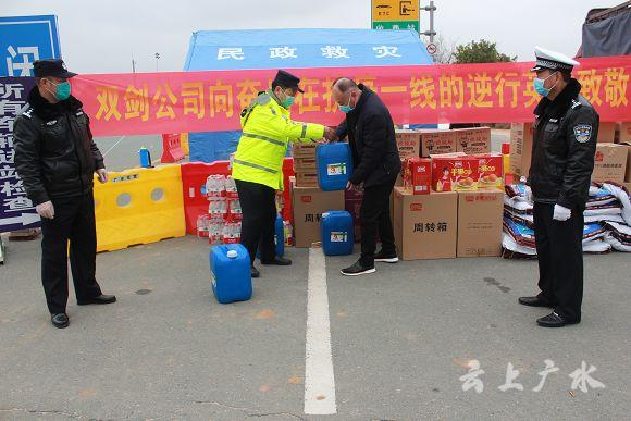 2月11日,广水双剑公司向一线执勤民警捐赠酒精12瓶、84消毒液10桶、洗衣粉16件等急需防护物资。“作为一家民营企业,理应担负起社会责任,为抗击疫情做贡献理所当然!”该公司董事长杨建明表示。
