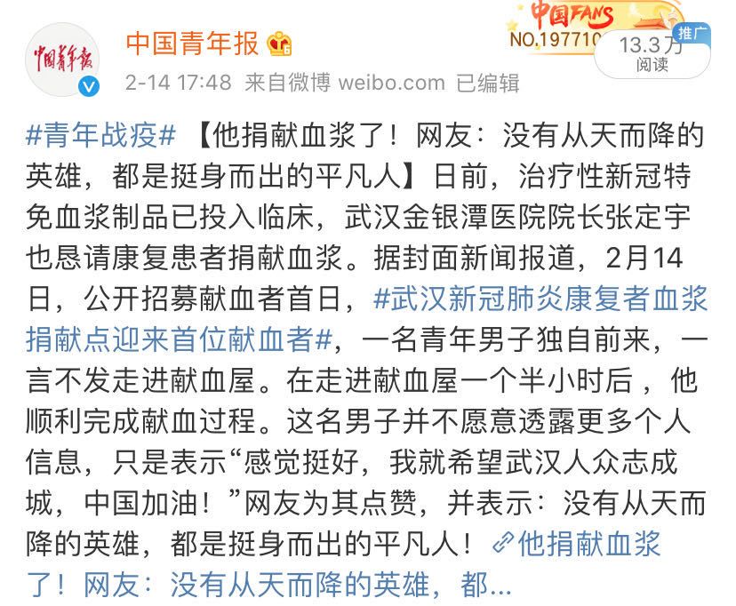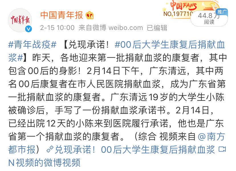 很快,”19名康复医护人员捐血浆”的消息在网上引发热议,不少网友被此感动......