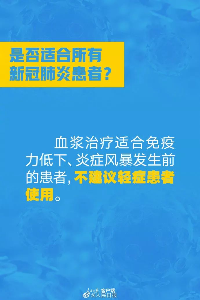 什么样的新冠肺炎患者适合“血浆治疗”?血浆治疗临床效果如何?存在风险吗?捐血浆对身体有影响吗?了解一下↓