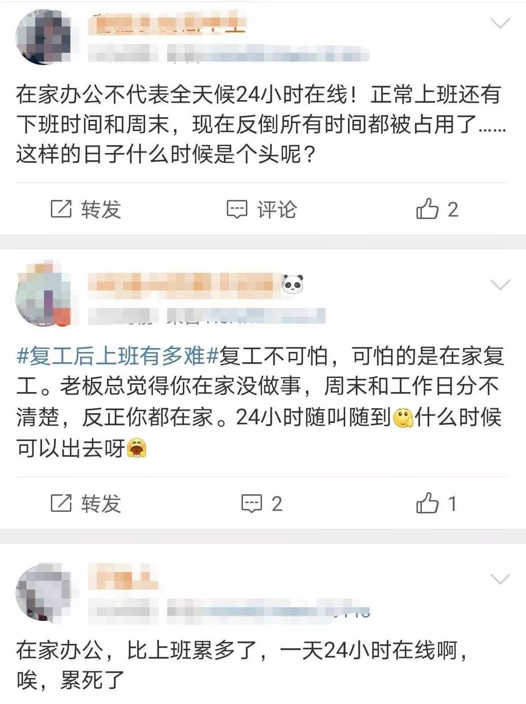 然而,很快有人发现,在家上班并非想象中的躺着赚钱,而是几乎7×24小时待命,工作时间大大延长,反而比正常上班更累。