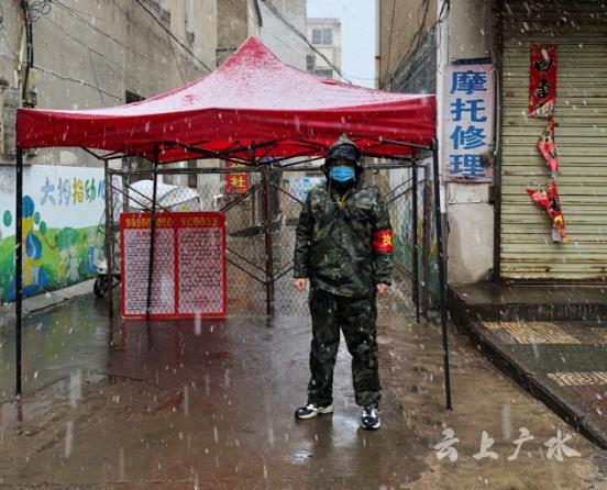 谁都不是生而英勇,只是选择无畏前行。2月14日晚,一场大雪突然袭来,路面上积起了一层厚雪,市农业农村局的78名防疫队员,从早上6点到晚上10点,风雪无阻,坚守岗位,做好通行登记,测量体温。他们有的是父亲、母亲,有的是儿子、女儿,但面对疫情,他们不畏艰险,奋勇向前,选择了冲到防控的第一线。风雪虽大,但人间有情,防疫队员们是这场“战役”中最温暖的光,为市民遮风挡雨,为群众的生命安全撑起了一片天。
