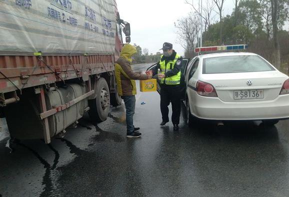 “谢谢!谢谢!在如此恶劣的环境里,要不是你们大力帮助把车修好,我真不知如何是好!”2月15日,给广水运送防疫物资的江苏泰州货车司机季龙临走时,向广水市公安局交警大队事故处理中队民警连连道谢。