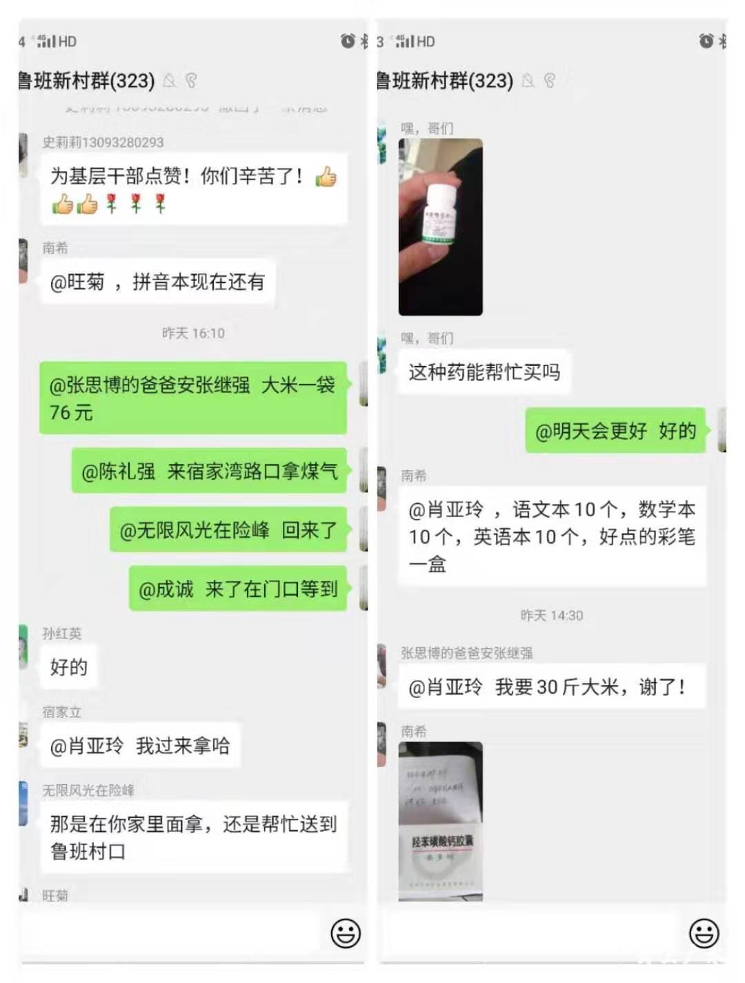 村组网格员、电话、代购微信群……蔡河镇杨坡村通过多种渠道收集村民生活物资需求,村干部主动为群众服务,奔波于镇区和乡村之间。“代购物品主要是米、油、面、蔬菜、卫生纸、牙膏、奶粉等生活必需品。”村支部书记胡小东介绍,镇里封闭了村与村、湾与湾之间路口,仅保留一个主要进出口,集镇超市限时、限人开放,村里安排两辆车、每两天去镇上进行一次集中采购。