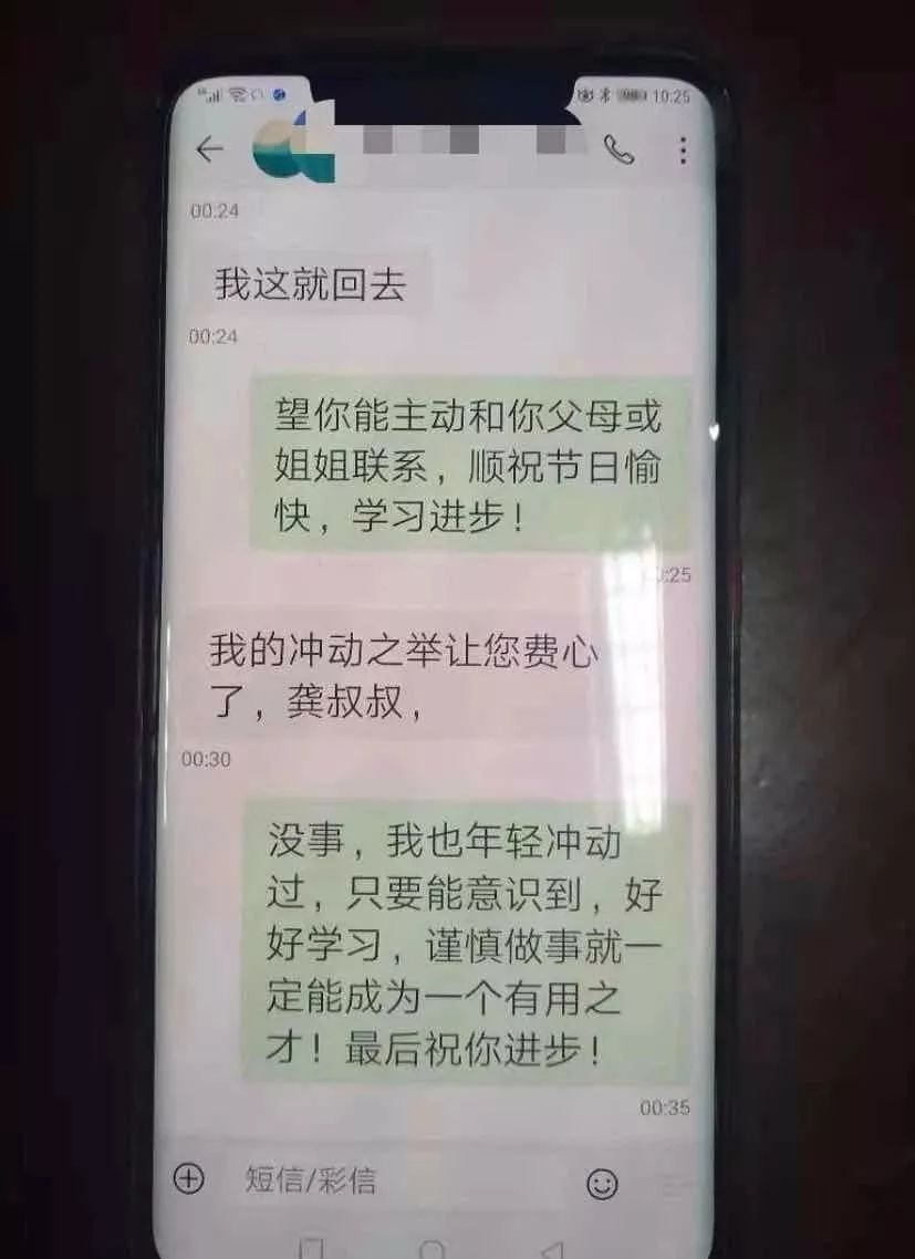 2月8日22时许,西城派出所接群众报警人称:其弟戢某15岁,和父亲吵架出走,担心发生意外,需要民警帮助。疫情当前,值班民警龚龙喜考虑群众安危,迅速查看视频监控,并与戢某的父亲一起按照路人提供的线索,持手电筒在白云山公园搜寻,正值寒冬深夜,寒风刺骨,龚龙喜等人在公园湖边搜寻一个多小时未果。返回途中,龚龙喜在警车上多次给戢某发短信,动之以情,晓之以理,劝导戢某回家,功夫不负有心人,戢某给龚龙喜回短信了:“龚叔叔,我现在马上就回家,你不用担心了。”龚龙喜让戢某父母赶快回家等待,十几分钟后,戢某母亲和姐姐来所称戢某已经回家,并向民警龚龙喜等当面道谢。