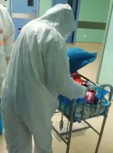 “小莉,请不要害怕,有我们在!”肖主任准备切皮前温情地说。17:48分,手术正式开始。手术比预想的要艰难的多!由于新冠病毒可通过气溶胶传播,而剖宫产患者血液、体液暴露在空气中,传播风险更大,所以必须严格三级防护!四层衣服、N 95口罩、护目镜、面屏、3双手套,憋闷难忍。更有呼出气体产生的雾气对护目镜的遮掩,严重影响手术视野……“平心静气,稳准操作”肖主任鼓励着大家!手术开始5分钟后顺利娩出一男婴,响亮的哭声,鼓舞着士气。18:45分手术完成,平时半小时左右就能结束的剖宫产手术,这次历时57分钟。术后,毕小莉生命体征平稳,子宫收缩好,转到了感染科一病区。周天彤主任亲自接待,合理安排给妇产科支援医生邱涵雅进一步诊治。宝宝已由贾主任接入新生儿隔离病房,迄今术后5天,母婴安好,新生儿️两次核酸检测阴性。