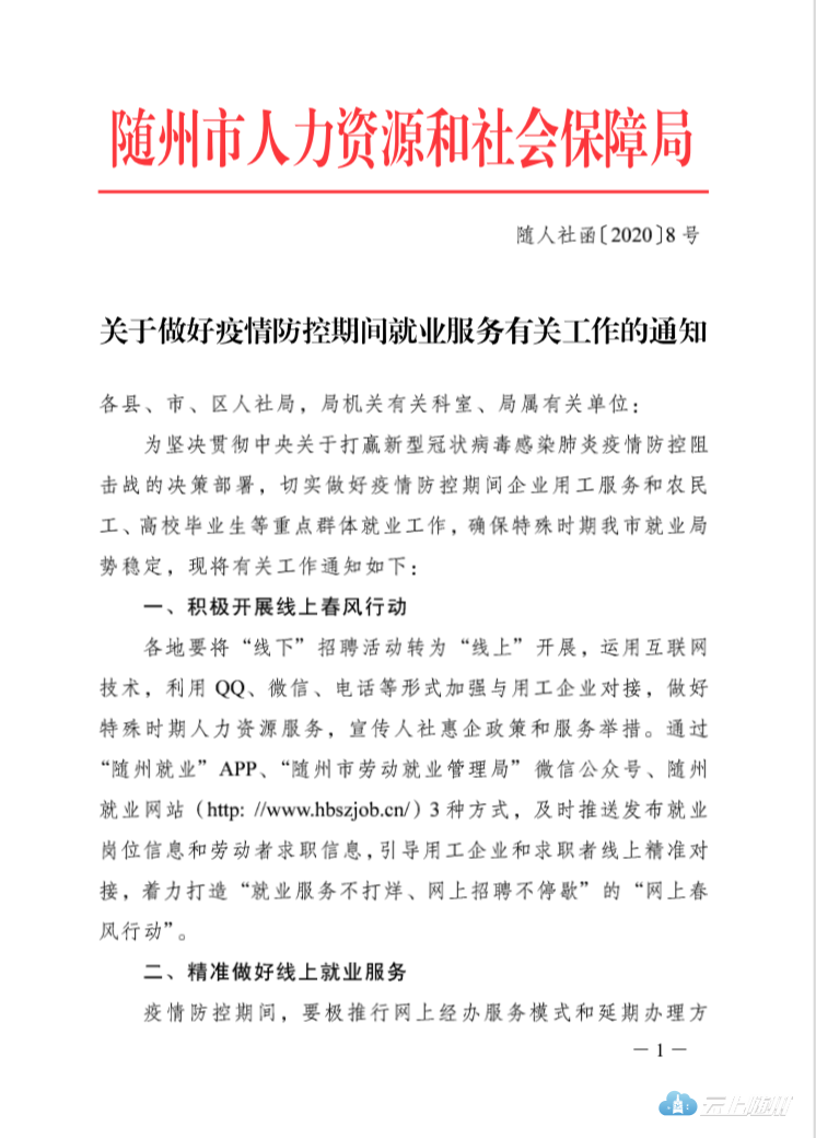 随州市人社部门出台政策支持相关企业开工应对疫情