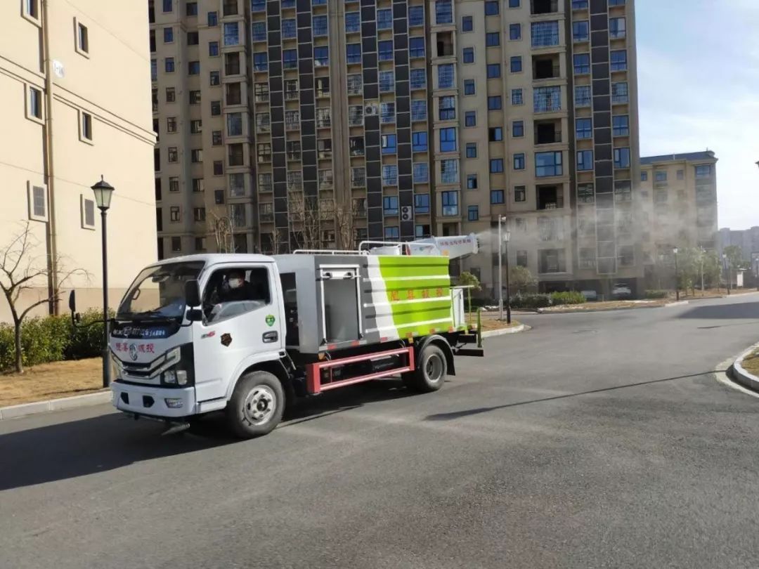 2月17日下午,随县城投公司调用一台雾炮车,对翰林苑、御景苑、千乘苑三个小区进行覆盖式喷洒消毒,开车的正是随县城投公司党组书记、董事长韩文君。