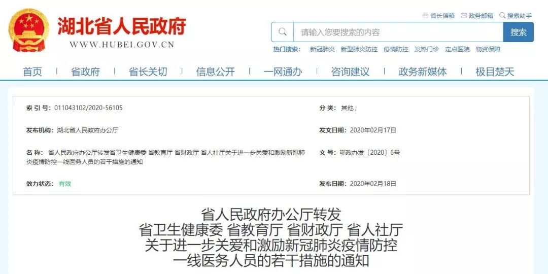 日前,湖北发布《关于进一步关爱和激励新冠肺炎疫情防控一线医务人员的若干措施》(全文>>),若干措施提出,加强对一线医务人员的政策倾斜,2020年参加中考的一线医务人员子女,有关市州可在其录取总分基础上增加10分后参加中考招生录取。