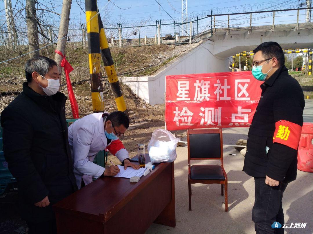 澴潭镇干部查看本镇与枣阳界域的交通开口,现场整改、加固道路隔断设施。草店镇严格执行“五个一律”:村(小区)一律24小时封闭、村(小区)一律划分为最小单元、车辆一律停驶、生活保障一律统一代购、违反疫情管控措施人员一律给与处罚。