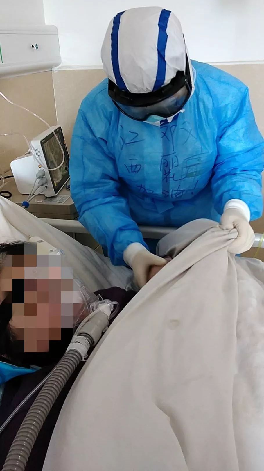 “其实,更多的时候,我们是在当保姆。”邓丽花补充道,像老太太这样病情较重的患者,补充营养非常关键。医疗队员把自己的牛奶送给她吃。老太太上了呼吸机,没有办法吃,她们就把老太太的面罩摘下来,采取鼻导管喂食的方法亲自喂给她吃。