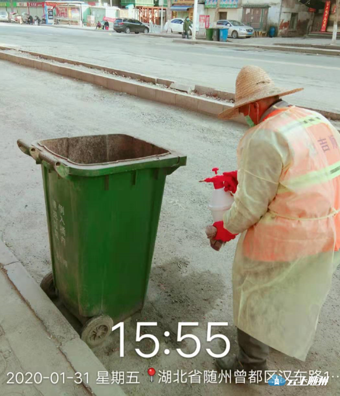 为给广大市民提供一个干净整洁的城市环境,正月初三早上八点,曾都区城管执法局局长陈林同志召集三个环卫外包公司负责人,在舜井大道路边现场办公,现场指出问题、现场制定保洁方案,要求各公司务必保证疫情防控期间城区环卫作业正常进行,同时全面保障环卫工人自身安全。目前,城区范围内每天都有600余名环卫工人坚守在工作一线,他们不仅清扫着街道,还对垃圾容器、垃圾转运站、公厕进行消毒杀菌作业。为避免个人防护用品乱扔造成二次污染,该局向城区范围内投放了400余个废弃口罩垃圾箱。为保障城区环卫工人作业安全,该局向环卫工人发放口罩9100个,防护服1000套,消毒粉10箱,消毒液60瓶。