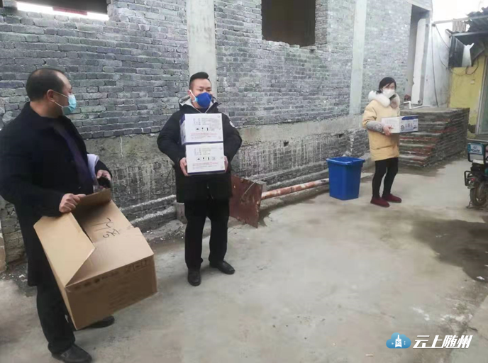 与此同时,曾都区城管执法局驻村工作队的疫情防控工作也在积极开展中,在府河镇閤家河村和柿园河两点扶贫点,工作队队员积极配合村委会干部开展入户核查工作、路口值守工作和体温测量工作,为两个驻点村共送去口罩1000个,消毒粉100斤,为困难家庭送去药品、米、油等急需物资。