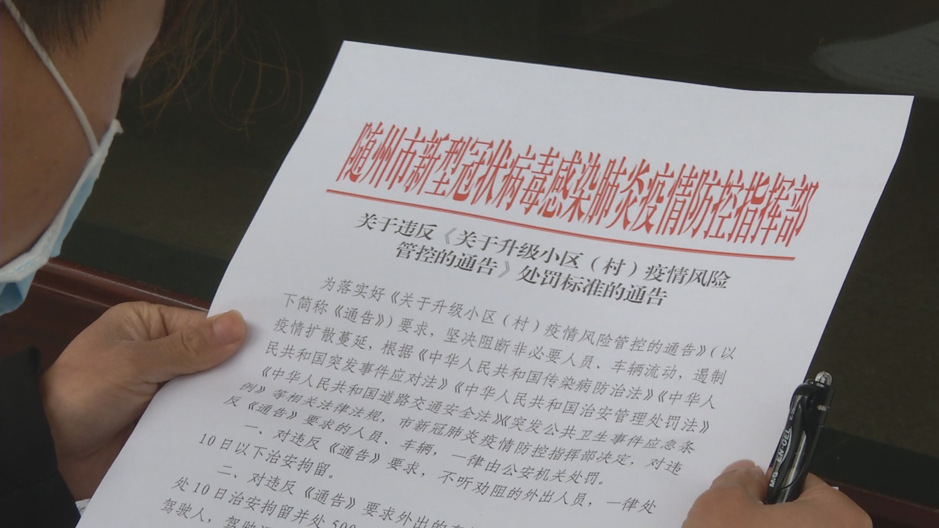 祝某说:“经过集中教育学习我深刻认识到错误,深表歉意,我保证今后不再违反通告关于擅自外出的规定,希望广大市民引以为戒,严格遵守随州市新型冠状病毒疫情防控指挥部通告规定,不擅自外出。”