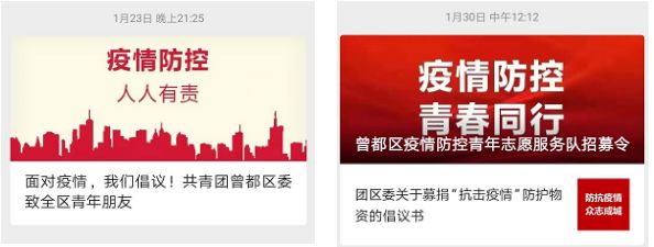 ▲ 紧急发布防疫倡议书、募捐倡议书和青年志愿者招募令。