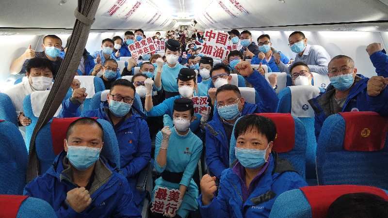 “洪山加油,洪山必胜!”当天上午,在驱车前往洪山镇的大巴车上,医疗队员们喊着口号,挥舞着拳头,抱着必胜的信念向着疫情第一线进军。