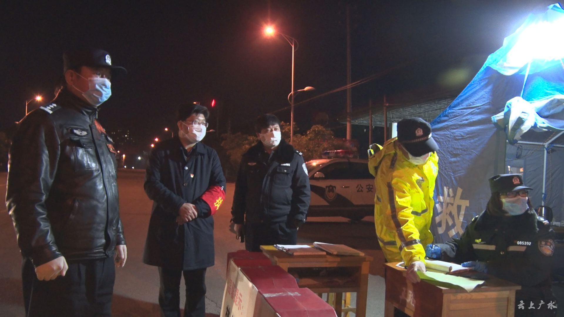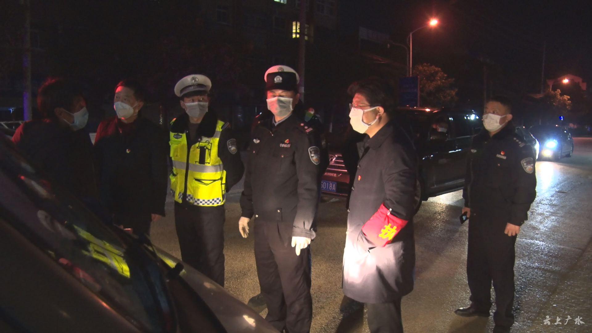 2月19日晚10点,广水市委书记黄继军配戴执勤袖标与公安交警、城管执法、交通运输三部门人员一起到应山城区主要路段、重要卡口开展防控巡逻和值守,要求执勤人员坚守岗位,履职尽责,从严从重打击夜间违法行驶、违法经营、违法外出行为。