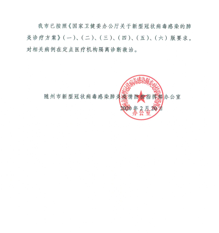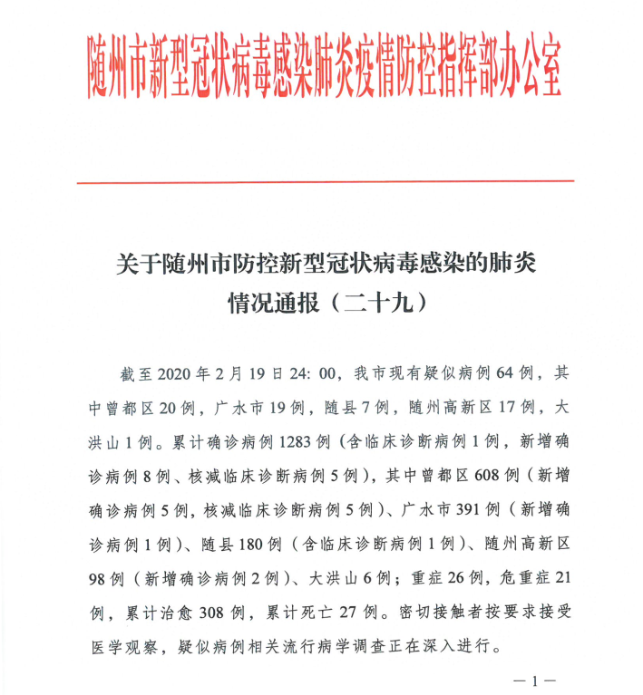 关于随州市防控新型冠状病毒感染的肺炎情况通报(二十九)
