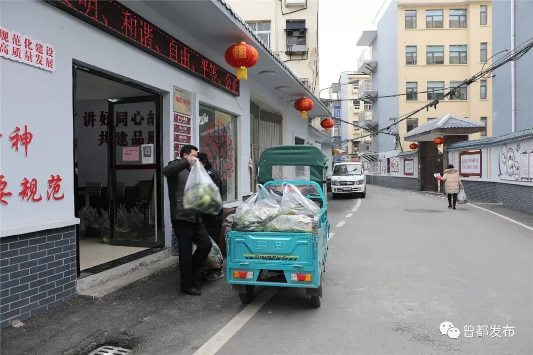 小货车卸完货后马上离开,随后,王小平和社区网格员邢晓庆立即推来电动车,装完蔬菜后两人立即赶赴马家巷送菜。