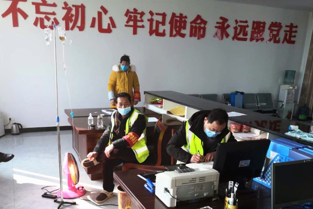 彼时,外面飘着雪,连药水都无法止疼的他实在难以行走,只能用取暖器烤一会再继续投入战斗。虽然他人“瘸”了,但带领队伍值守、对村民进行检测排查、对密切接触者“一日三测”等日常工作一样没落,因为他牢牢记着身后的几个大字“不忘初心,牢记使命,永远跟党走”。