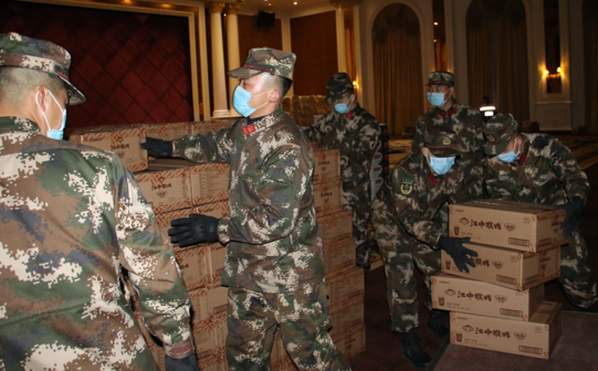 疫情就是命令,时间就是生命!武警随州支队接到驻地政府疫情防控指挥部请求后,迅速派出党员突击队,担负此次物资转运任务。抵达现场后,官兵分成卸载、转运、搬送三个突击小组,在任务中,支队党员干部模范带头、身先士卒,全体官兵团结协作,争分夺秒转运防疫救援物资,经过4小时的连续奋战后,各类物资已全部转运完毕。