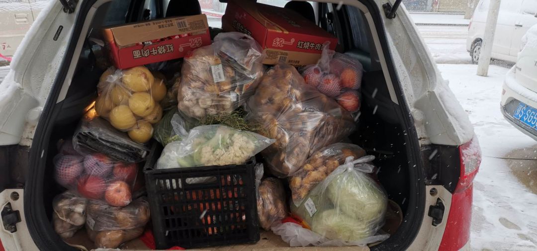 2月20日,马振华载着满满一车为村民代购的生活物资,向解河村驶去,雪后的道路上,留下他深深的车辙印。
