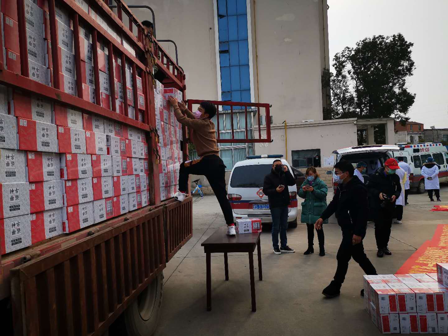 一方有难八方支援,新冠肺炎疫情发生以后,黄鹤楼酒业随州分公司炎帝神曲在捐赠50万人民币的基础上,今天上午,又向抗疫一线的“逆行者”捐送价值52万元的古乐神曲植物饮料5000箱。