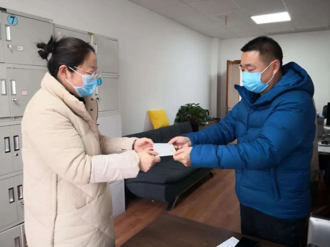 城南新区相关负责人接收捐赠物品,并表示,“城南新区全体人员定会迎难而上,以实际行动扛起责任,打赢这场看不见硝烟的战争!”