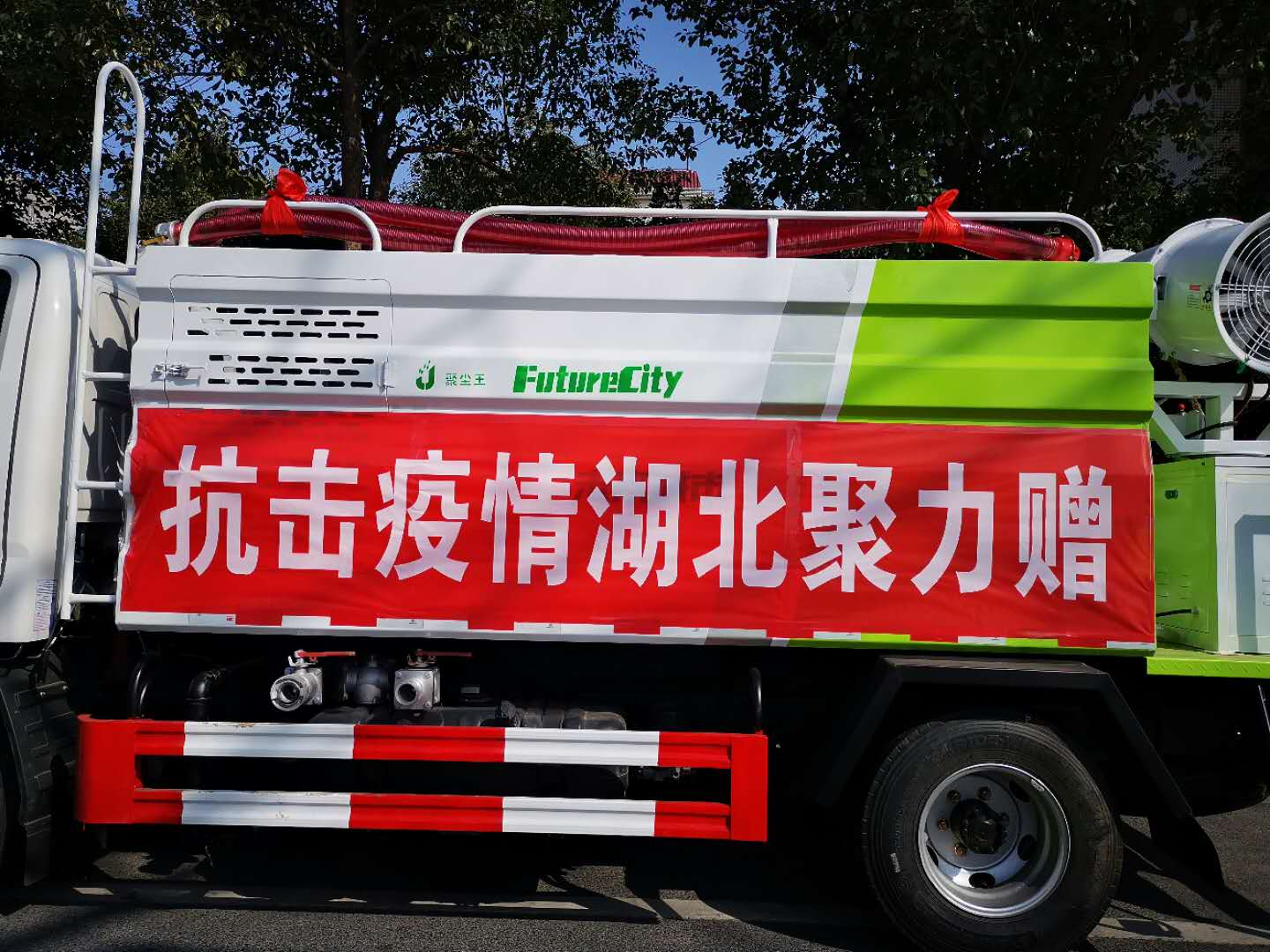 日前,湖北聚力汽车技术股份有限公司向曾都区红十字会捐赠了一台价值13万的多功能抑尘车。今天,这辆爱心抑尘车正式转交给区城管执法局用于疫情防控后勤保障。
