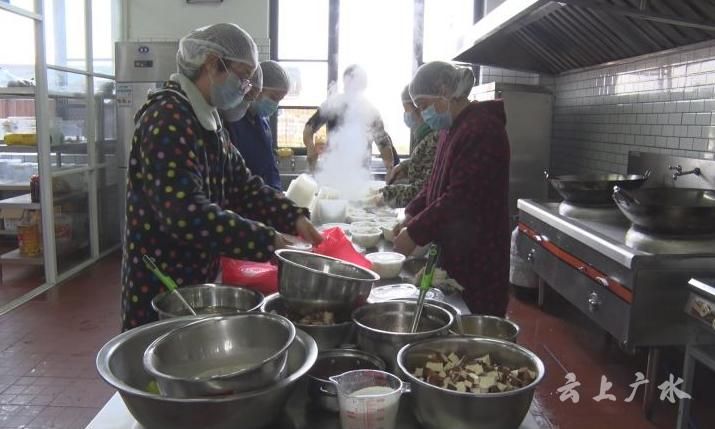 他们每天消毒、洗菜、切菜、炒菜、煮饭、包装、配送。从早上5点到晚上9点,像一个上满劲的发条周而复始,一直到今天。她们长期在冷水中浸泡的手,有的已经脱皮,有的冻的发紫;切菜的手破了再忍,直到长出了厚茧;从早到晚双腿已经僵直,却依然迈出坚定的脚步,每天做200余份盒饭送到医护人员手中。